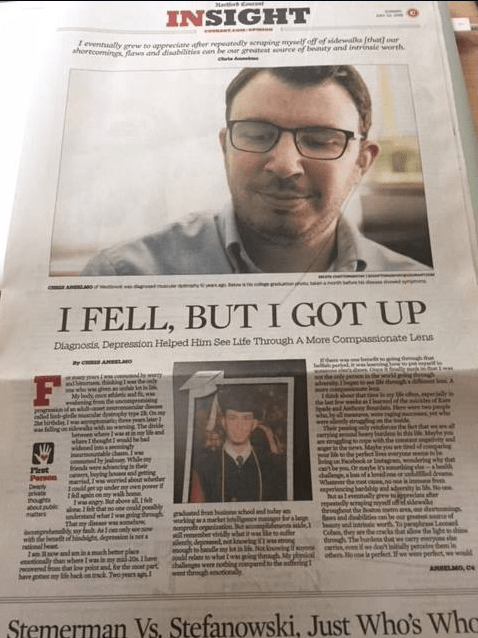February – Wrote an article that appeared in MDA’s Quest Magazine about the importance of having role models when you are going through adversity.