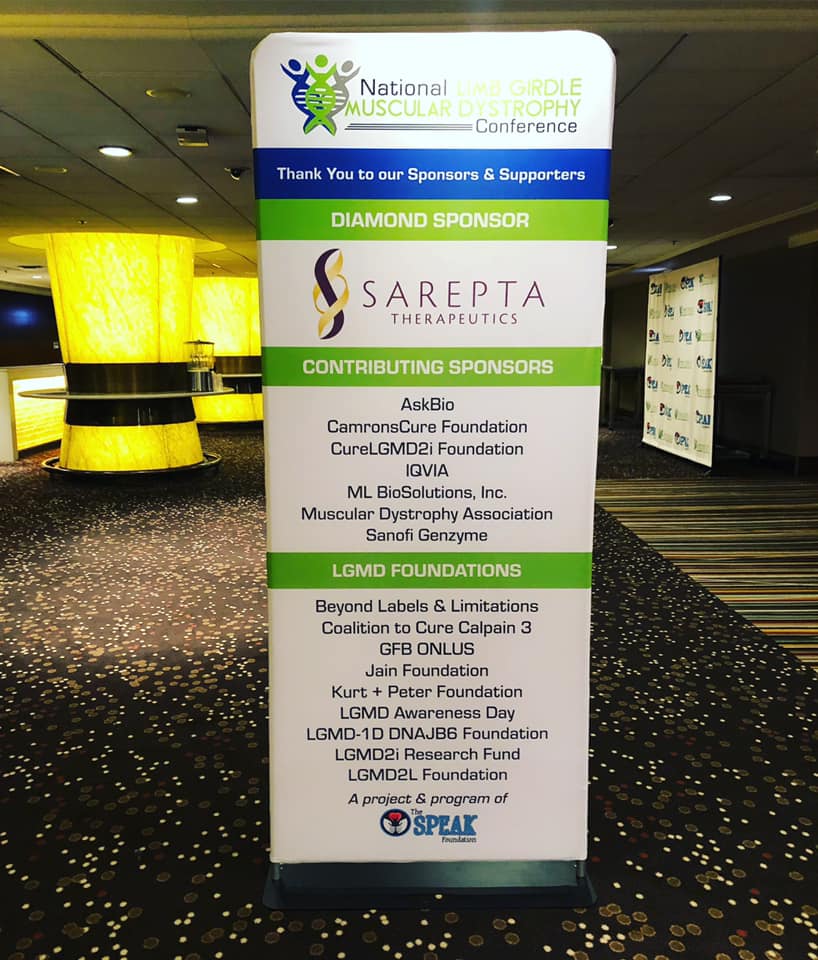 This conference was built with the patient in mind, and that is a testament to the patients who helped organize the conference. Many thanks are in order. You can see a picture of the supporters of this conference below, but a special shout-out goes to the organizers, Kathryn Bryant, Brad Williams and Carol Abraham. They are passionate leaders in the limb-girdle community and worked tirelessly to put together a great event. I can’t wait for the next event two years from now. No pressure!